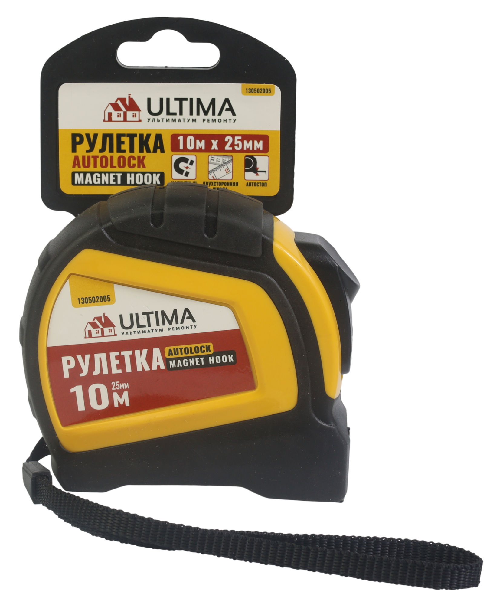Рулетка Autolock Magnet Hook оснащена износостойким полотном, что вместе с обрезиненным корпусом обеспечивает больший срок службы инструмента. Функция автостоп облегчает замеры, а благодаря двойному магнитному зацепу и двухсторонней шкале рулеткой удобно пользоваться при измерении высоких объектов, стен, потолков.