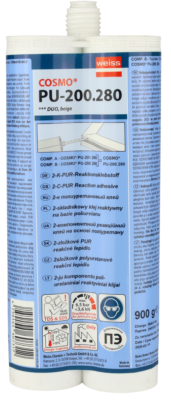 Двухкомпонентный высокопрочный полиуретановый клей без растворителя для конструкционного склеивания угловых соединений металлических конструкций.