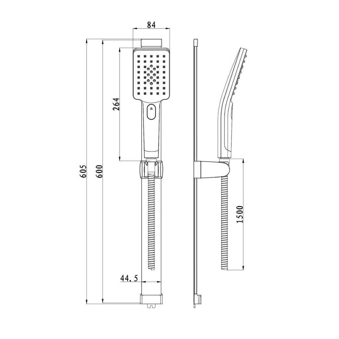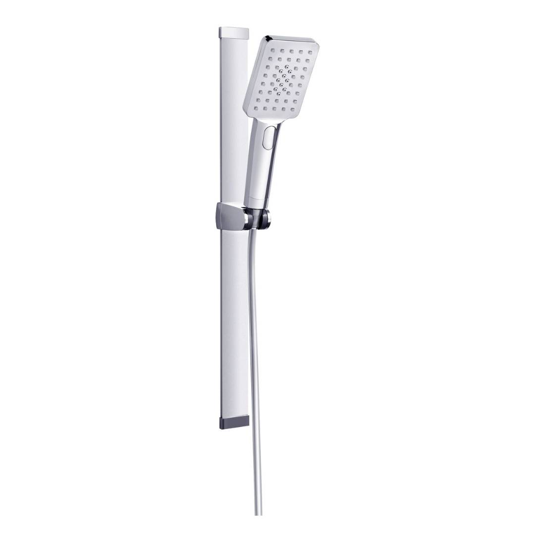 Лейка имеет прямоугольную форму с размерами 84×100 мм и оснащена множеством мелких форсунок, обеспечивающих равномерный и комфортный поток воды. Площадь рассеивания воды оптимальна для принятия душа, позволяя насладиться полноценным водным процедурам. Длина гибкого шланга составляет 1500 мм, что обеспечивает максимальную свободу движений. Вы сможете легко отрегулировать высоту душевой лейки, зафиксировав её на удобной высоте с помощью надежного держателя.