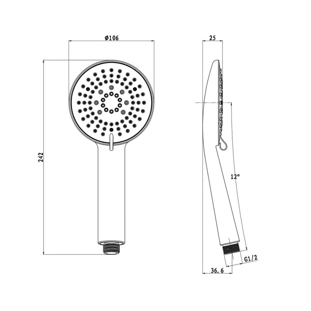 Эргономичный дизайн ручки обеспечивает комфортный хват и предотвращает скольжение даже мокрыми руками. Изготовлена лейка из высококачественного, прочного АBS пластика, устойчивого к ударам и механическим повреждениям. Крепление стандартное — ½ дюйма, подходит к большинству душевых шлангов.