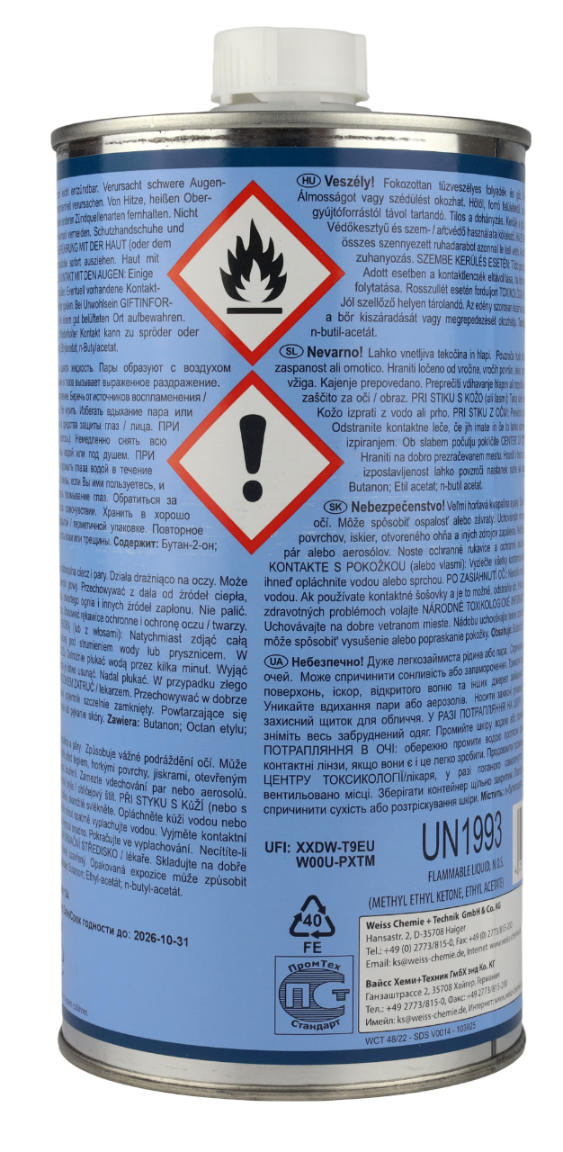 • Оказывает сильнорастворяющее воздействие на ПВХ-материалы