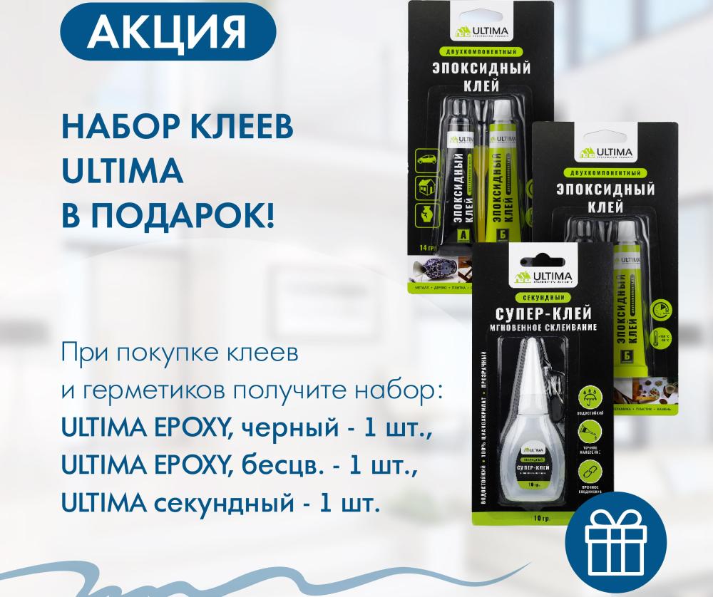 В подарок набор клеев Ultima! При покупке герметиков и клеев в ассортименте.