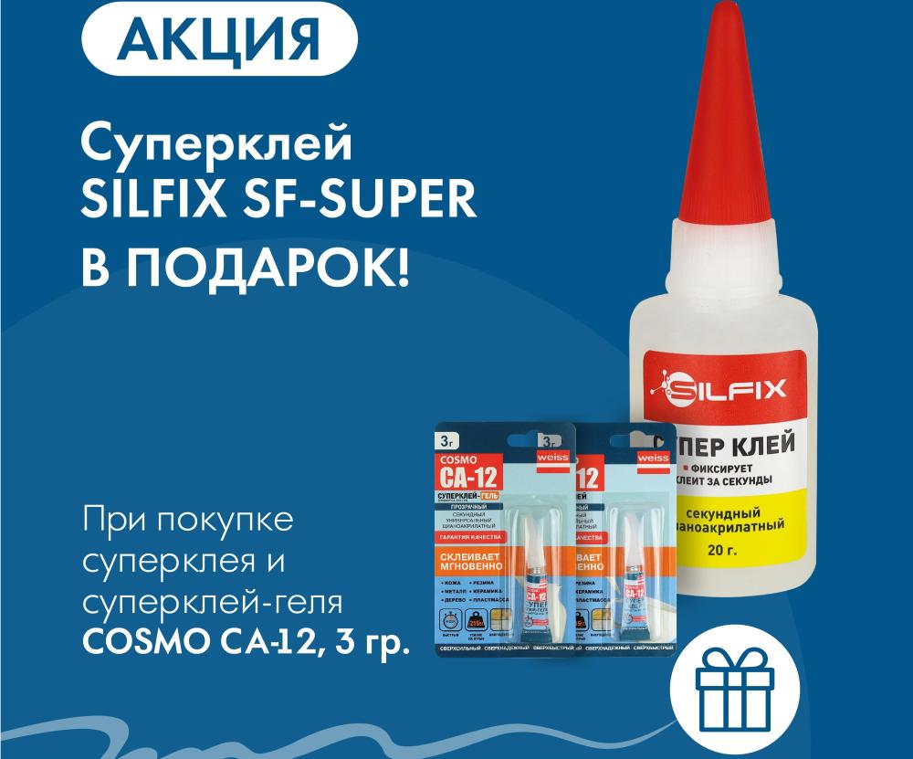Вы получаете в подарок суперклей Silfix SF-Super при покупке секундного суперклея или суперклея-геля CA-12, 3г, марки Cosmo.